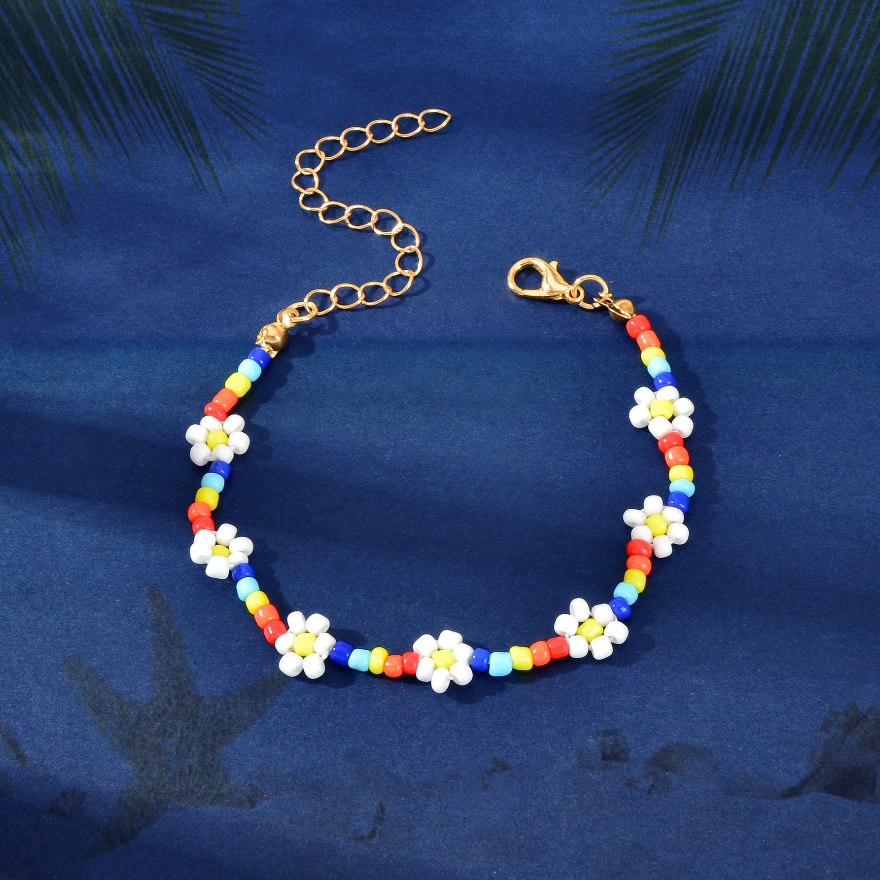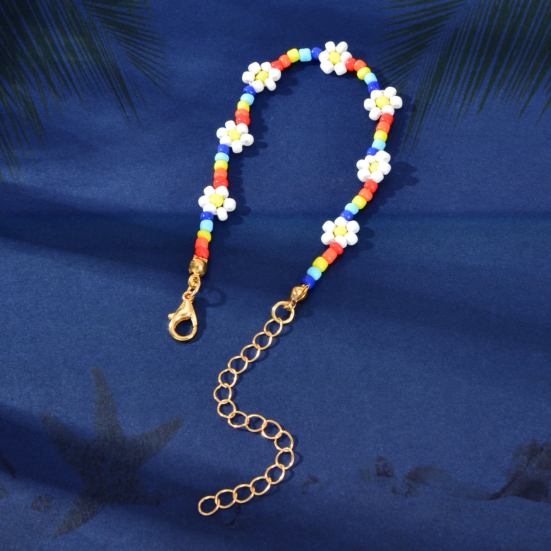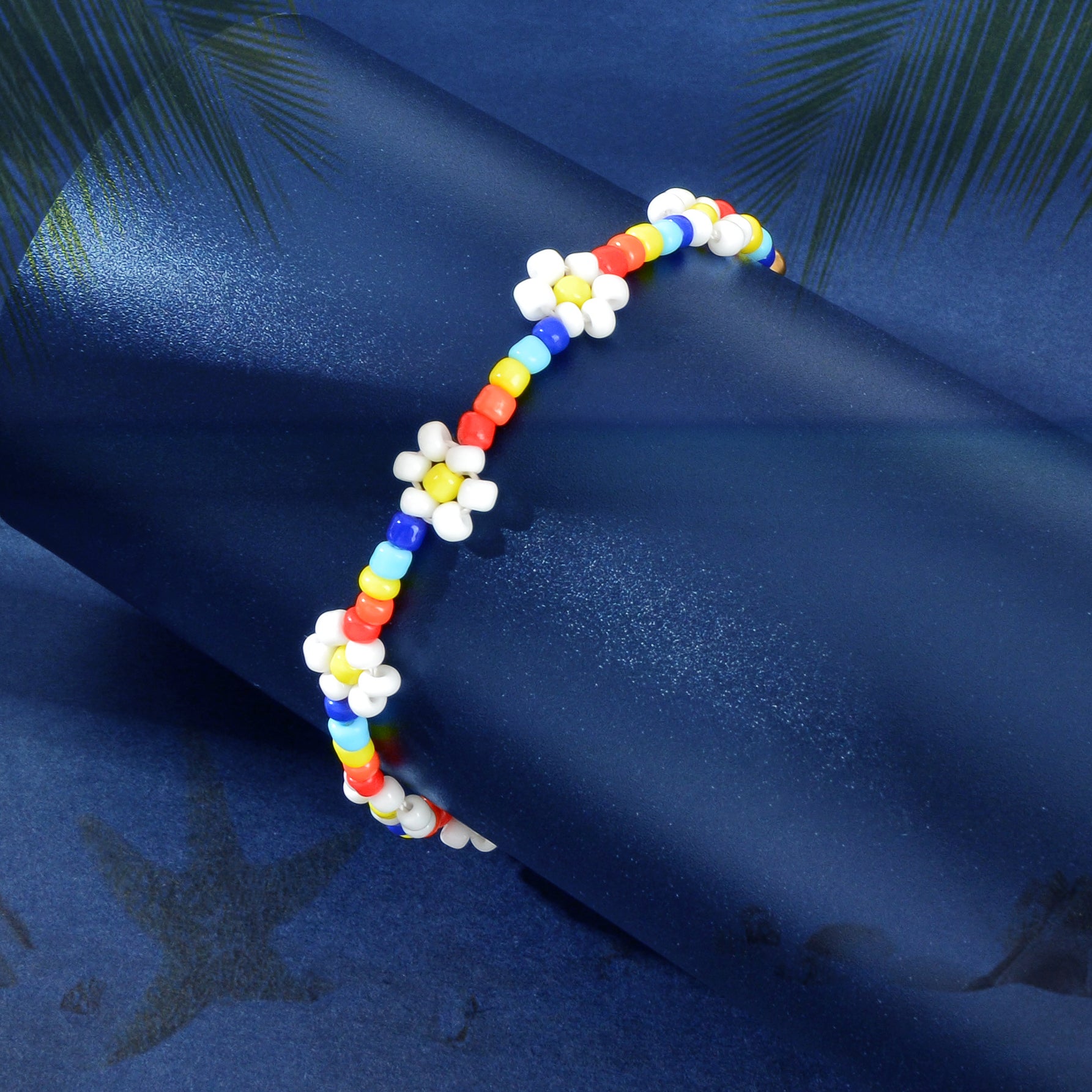 Bohemian Handmade Blue White Beaded Braided Flower Beach Anklet Foot Jewellery